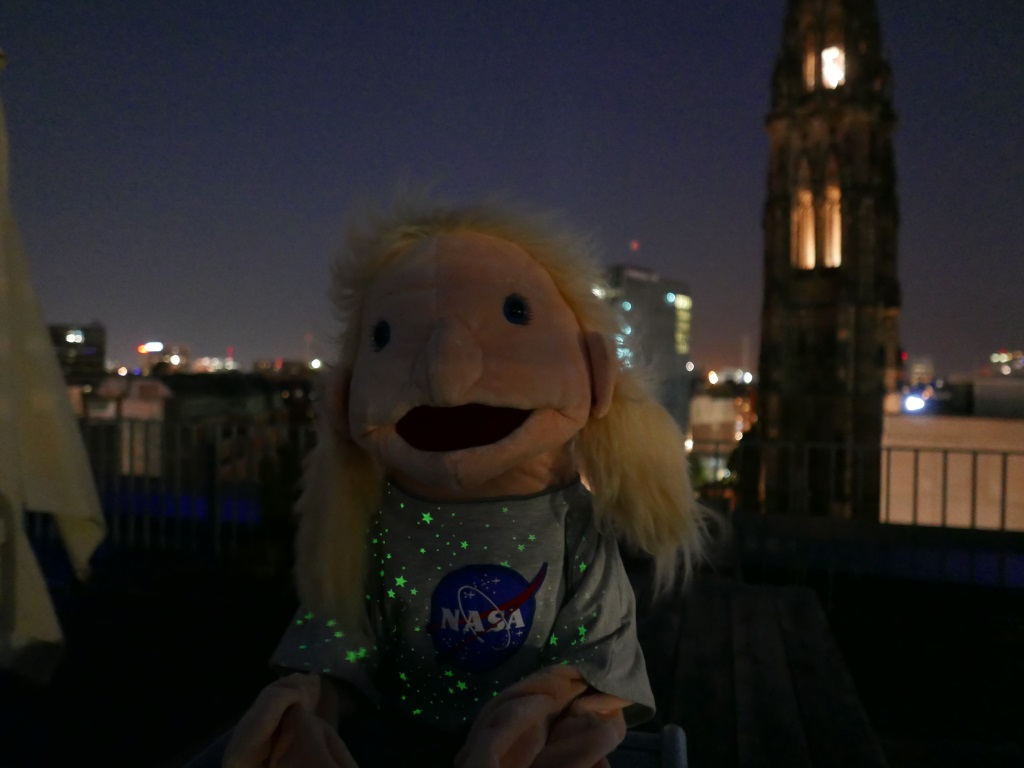 Übrigens flog die ISS zweimal über uns alle, die sich auf der Dachterrasse des Hamburger Abendblattes versammelt hatten, hinweg. Als Raumfahrtbegeisterte habe ich dem deutschen Astronauten Alexander Gerst natürlich zugewunken. Dass der Mars auch noch zu sehen war, rundete dieses Jahrhundertereignis vollends ab.