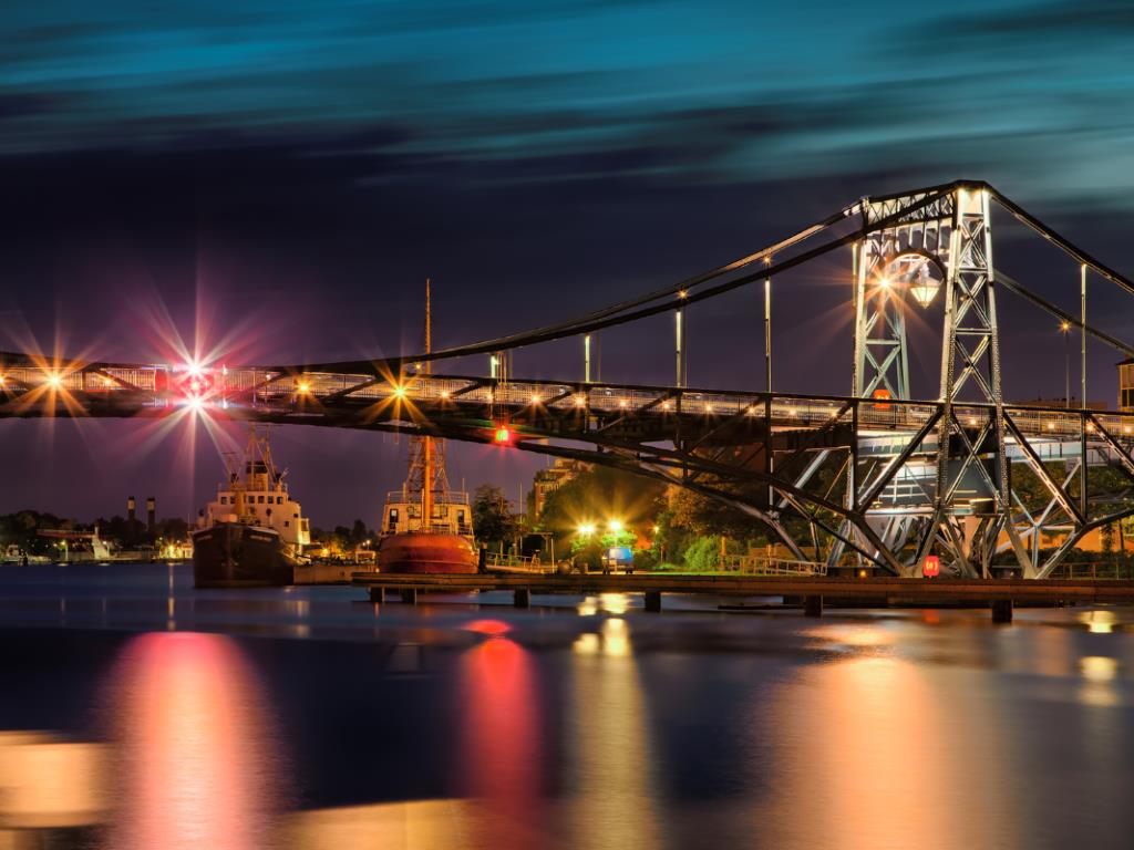 Die Brücke, übrigens zum Wahrzeichen der Stadt auserchoren, ist Deutschlands größte Drehbrücke! Sie schwebt bei geschlossenem Zustand über den Ems-Jade-Kanal und ist für Autofahrer, Fußgänger und Radfahrer eine Möglichkeit, von der Südstadt zum Südstrand und umgekehrt zu gelangen. Bei geöffnetem Zustand lässt sie unter anderem unsere Kriegsschiffe passieren. An dieser Stelle bin ich mir übrigens unsicher, ob der Begriff „Kriegsschiff“ in der Marine geläufig ist oder auf Grund der Vergangenheit lieber vermieden wird.